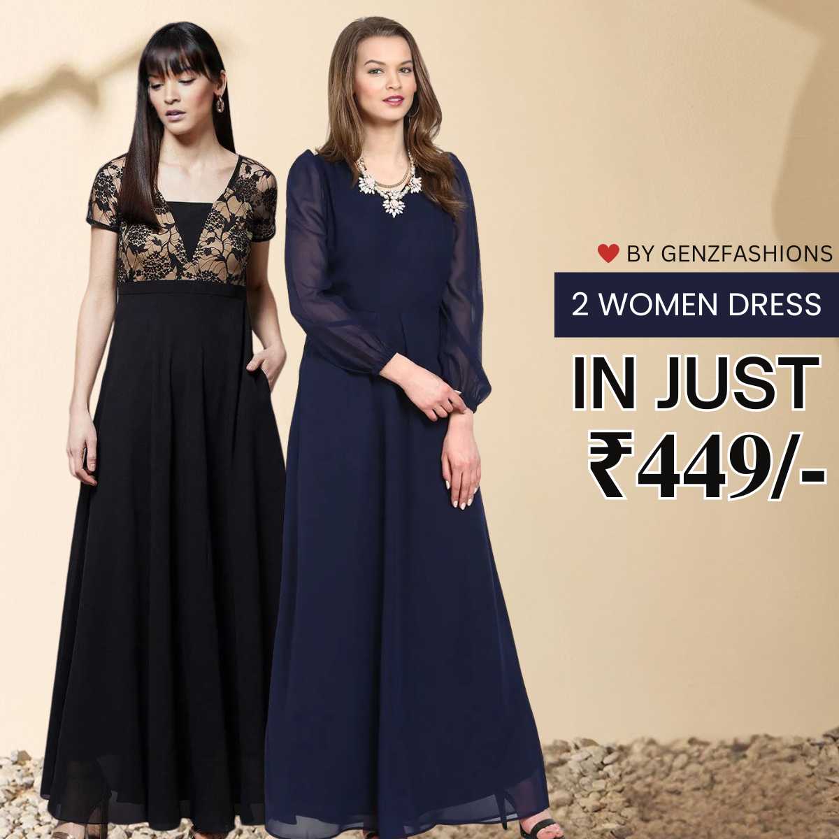 Step into style and sophistication with this exclusive combo of two stunning women’s dresses. Perfect for any occasion, this set includes a chic casual dress and a glamorous evening dress, designed to complement your wardrobe effortlessly. Crafted with premium-quality fabrics, these dresses offer unmatched comfort and durability while keeping you on-trend. Whether it's a day out with friends or a special celebration, these versatile pieces ensure you look your absolute best.